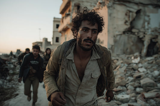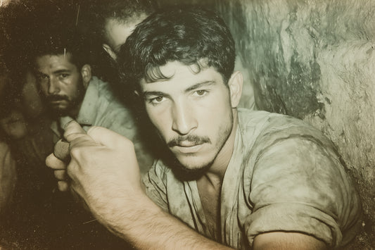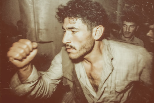 fellaga jeune, poing serré, regard fixe dans l’ombre