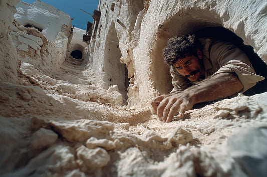 fellaga rampant sous les pierres, yeux fermés dans la poussière