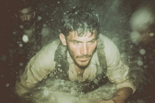 fellaga rampant dans l’eau et la nuit, regard concentré