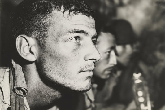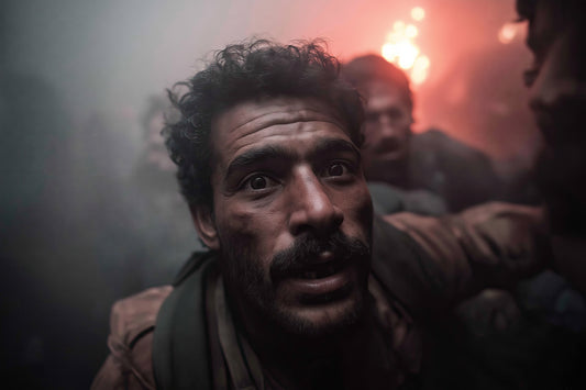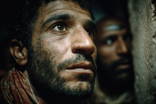 regard tendu dans l’ombre, visage marqué collé à la paroi